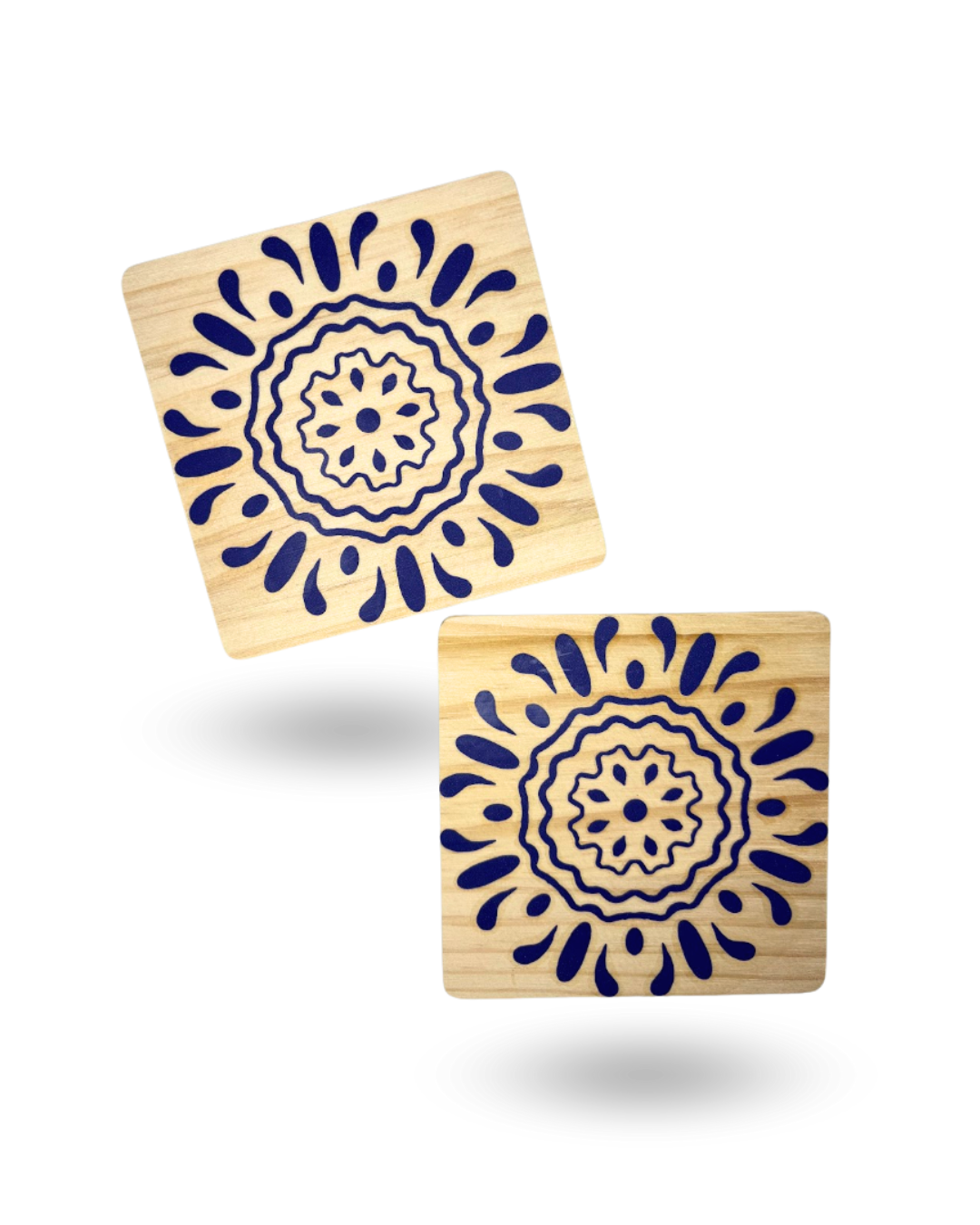 Blue Pottery Wooden Tea Coasters – Elegant & Durable with Non-Slip Base