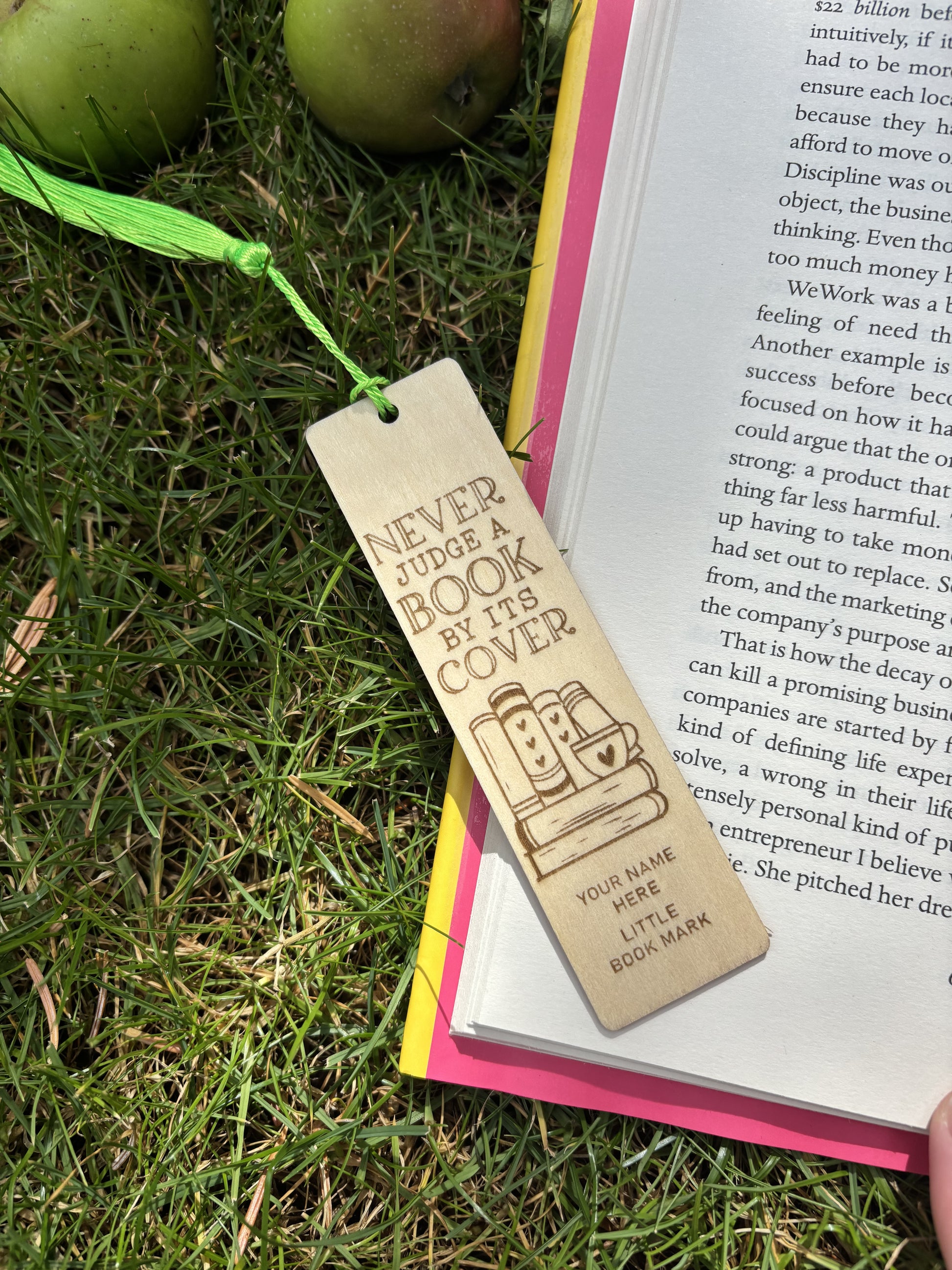 Custom Wooden Bookmark – “Never Judge a Book by Its Cover”